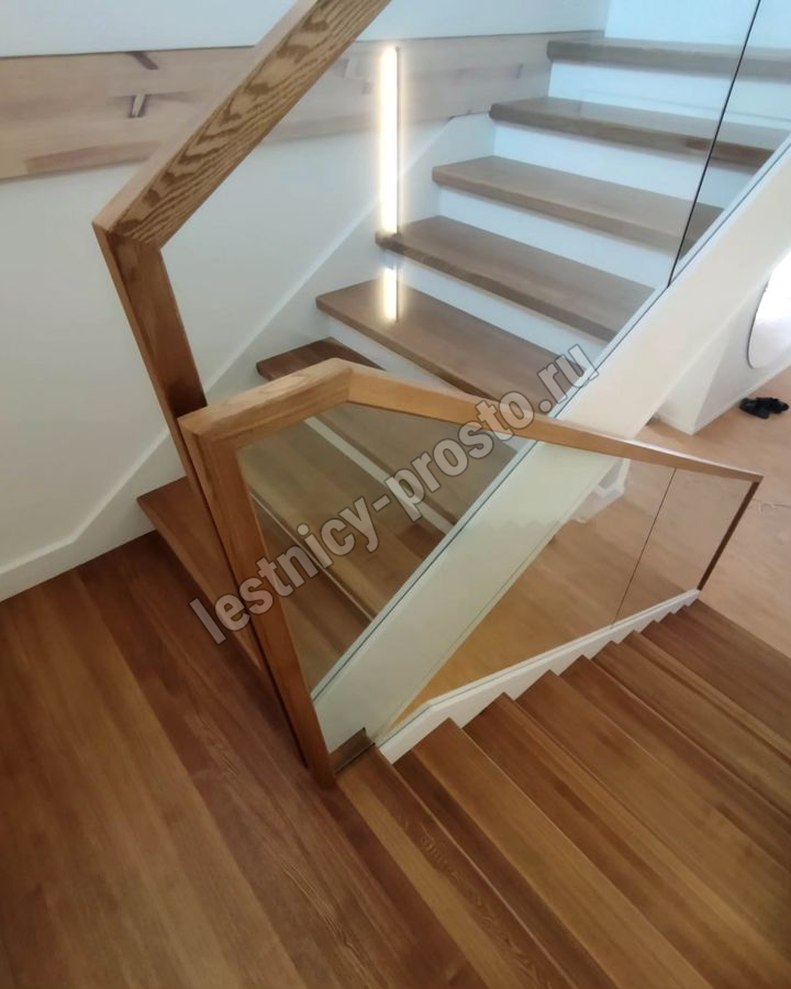 Ступени и поручень выполнены из цельноламельного срощенного дуба категории АВ.