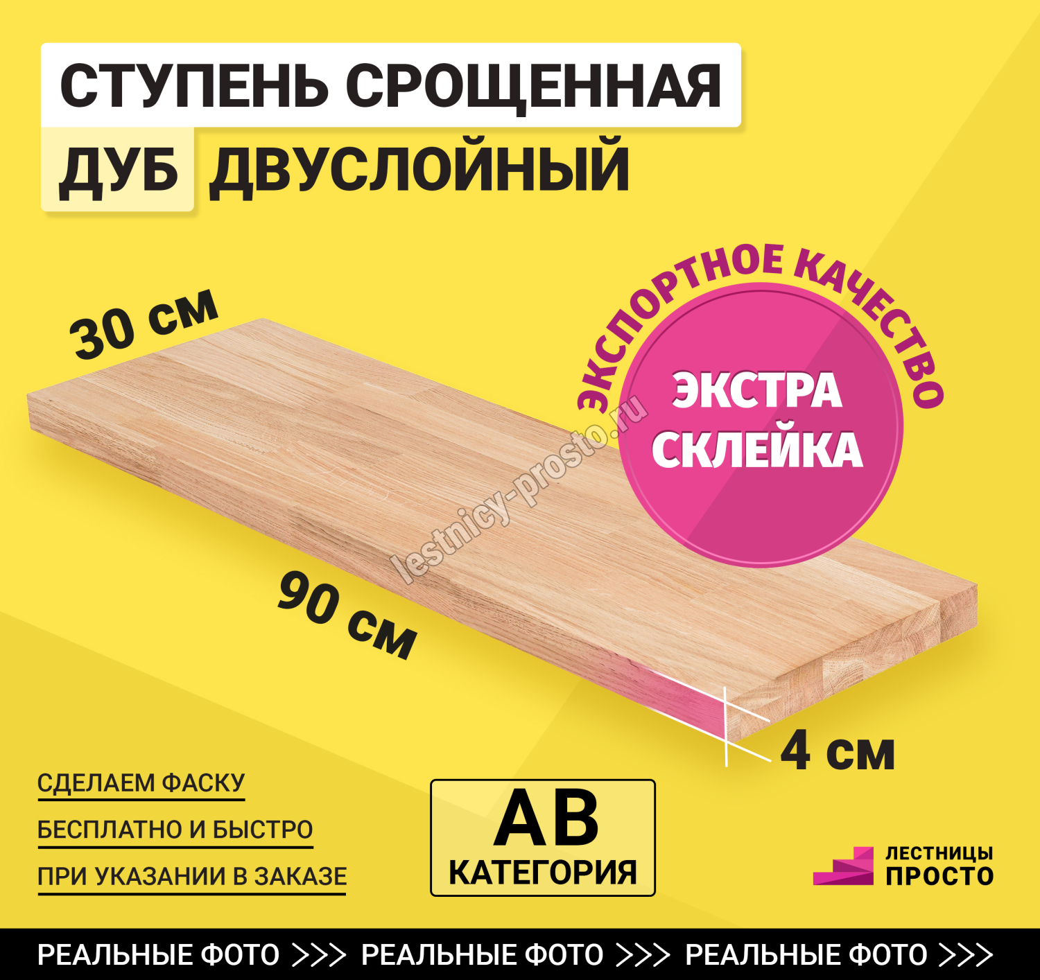 Ступень для лестницы из массива срощенного дуба АВ 900×300×40 мм