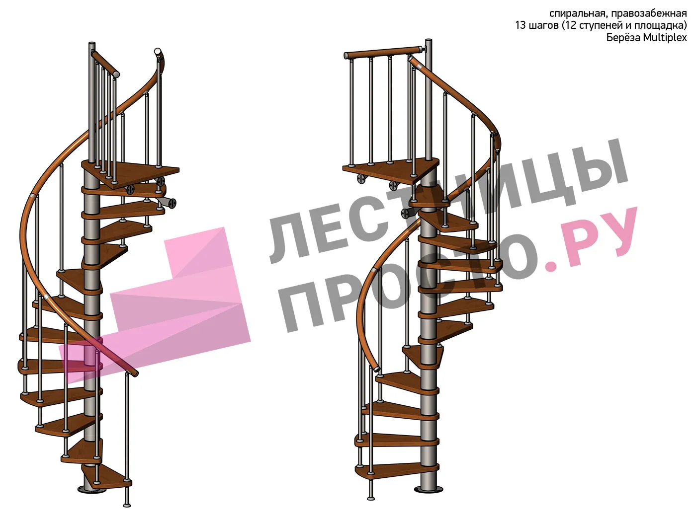 Решение об ориентации поворота лестницы принимается при сборке (комплект собирается и в правозабежную, и в левозабежную лестницу)
