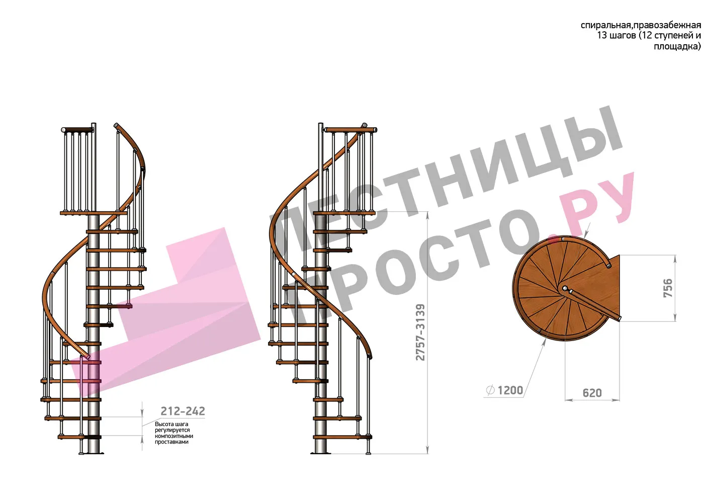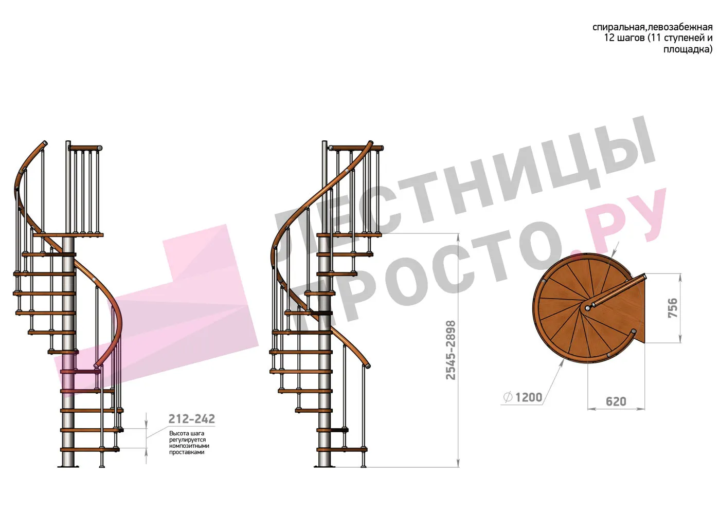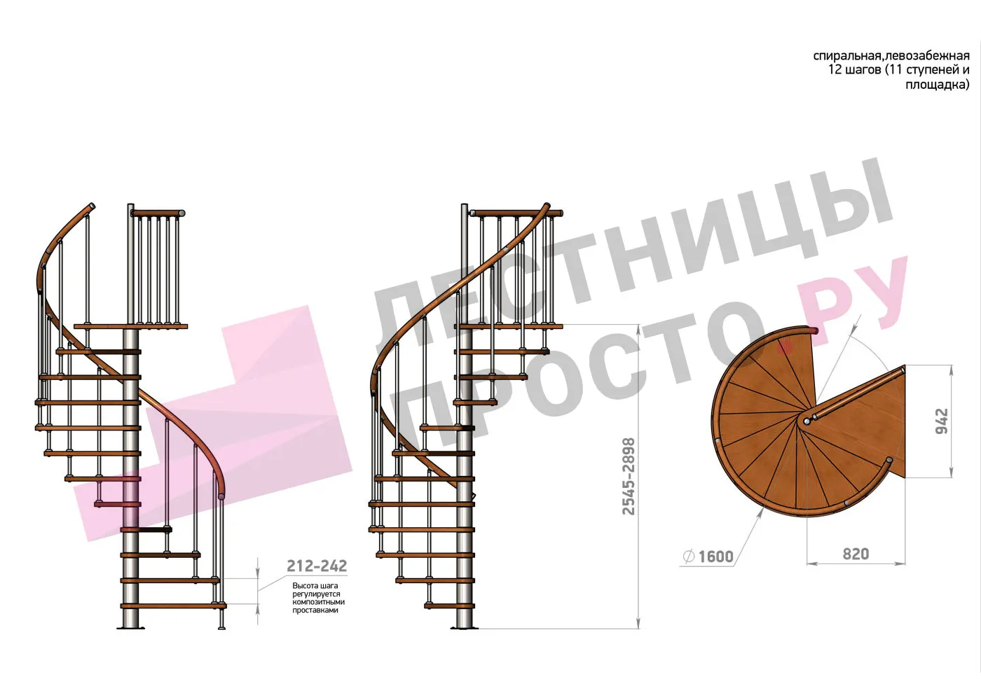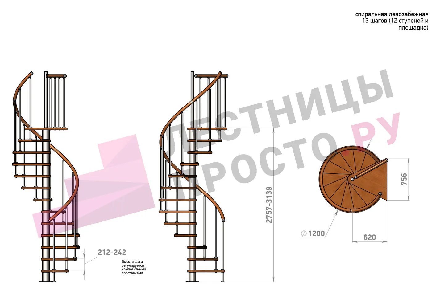 | Винтовая лестница Prosto Spiral Цршеу D120см, h225.5-247.5 см |
