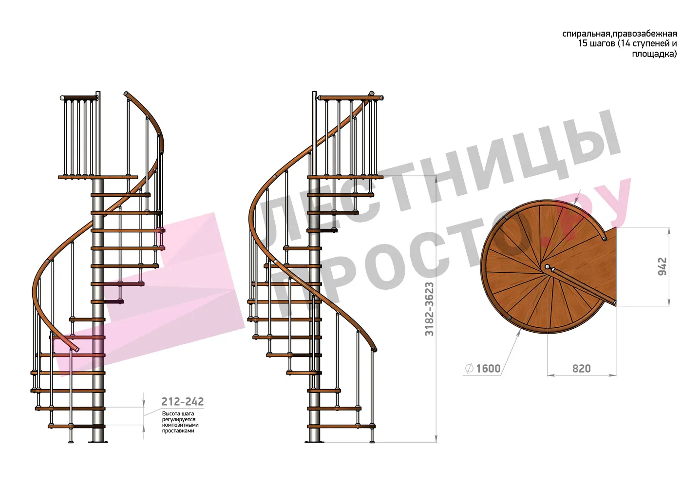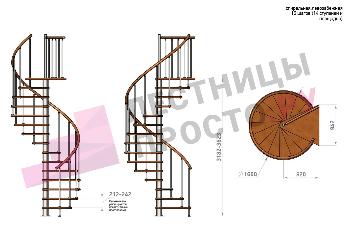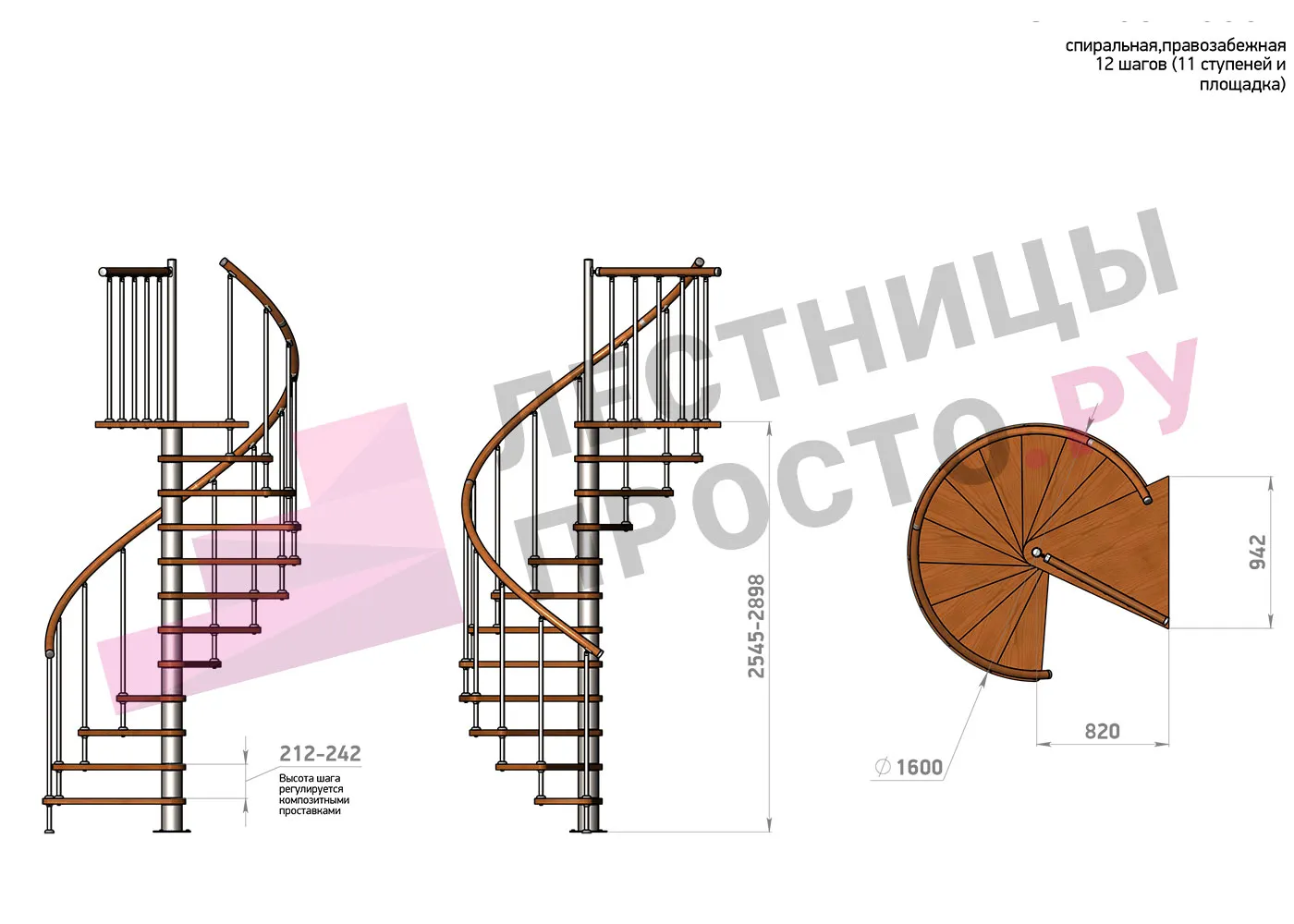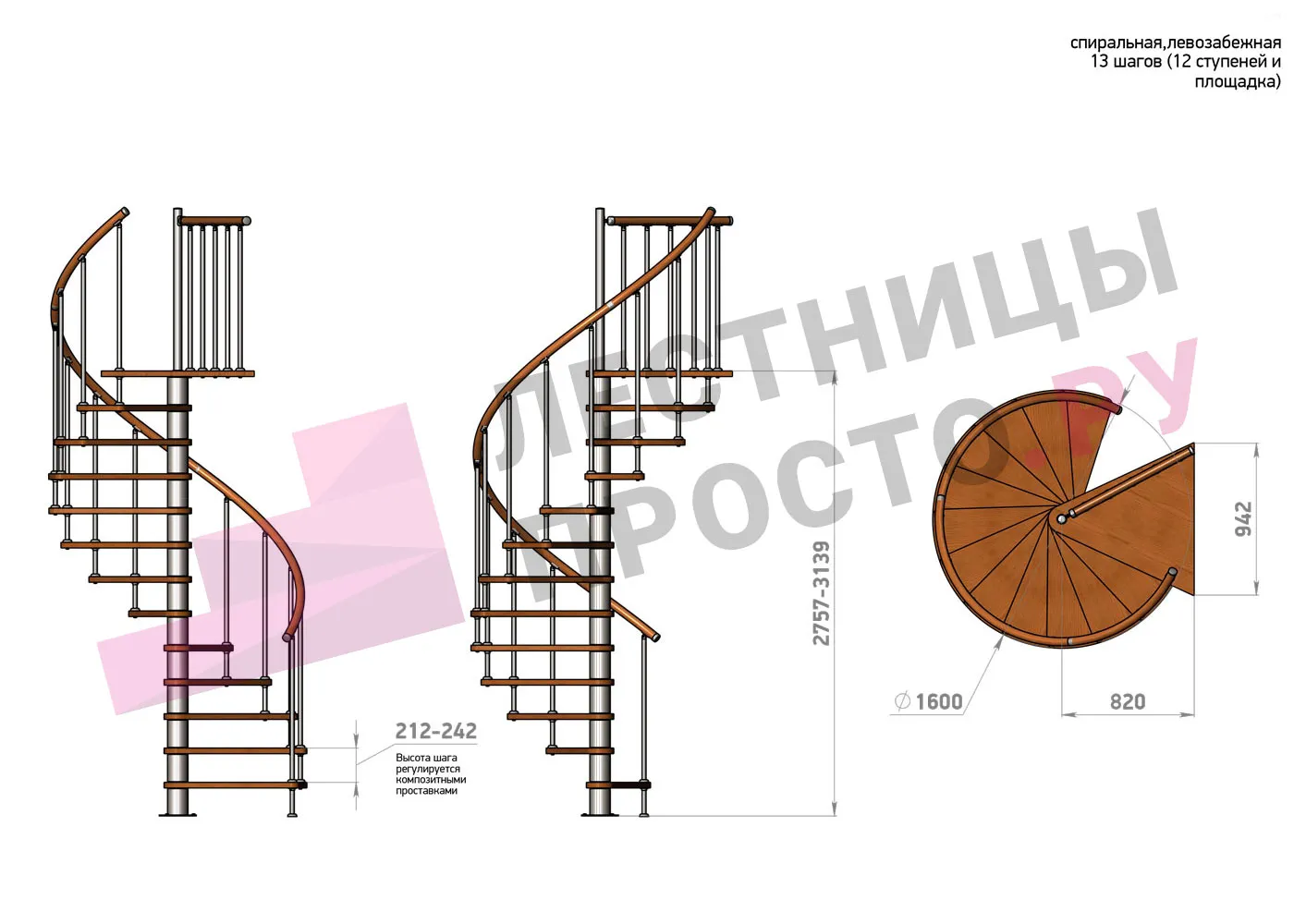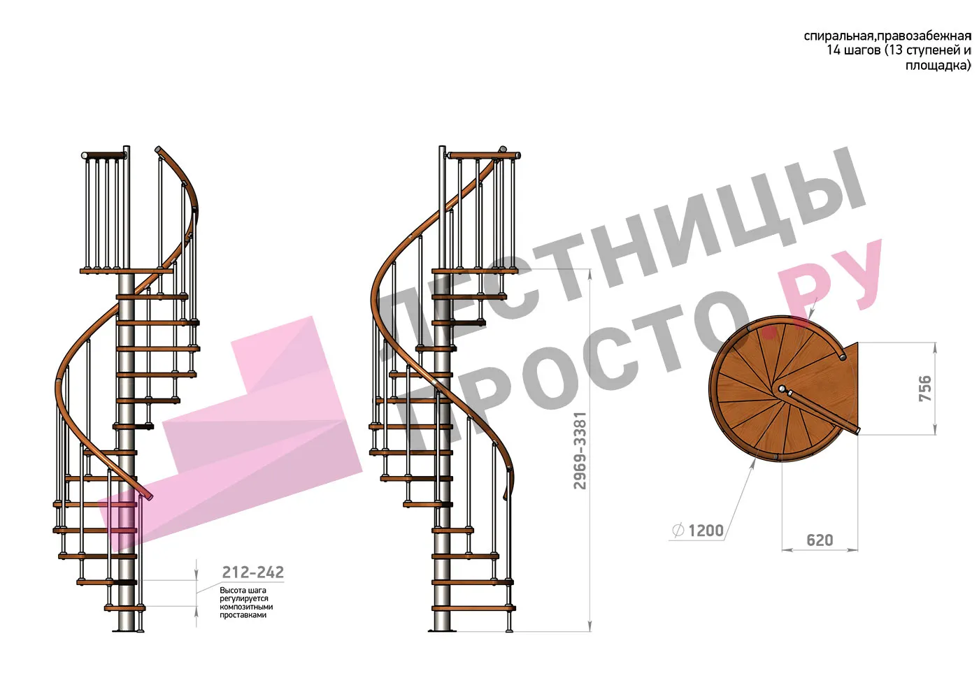 | Винтовая лестница Prosto Spiral Цршеу D120см, h225.5-247.5 см |