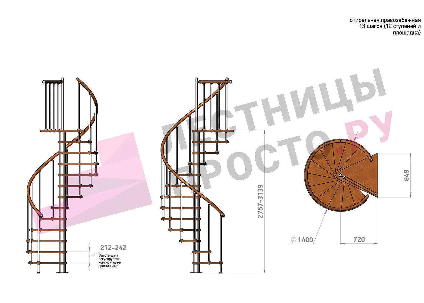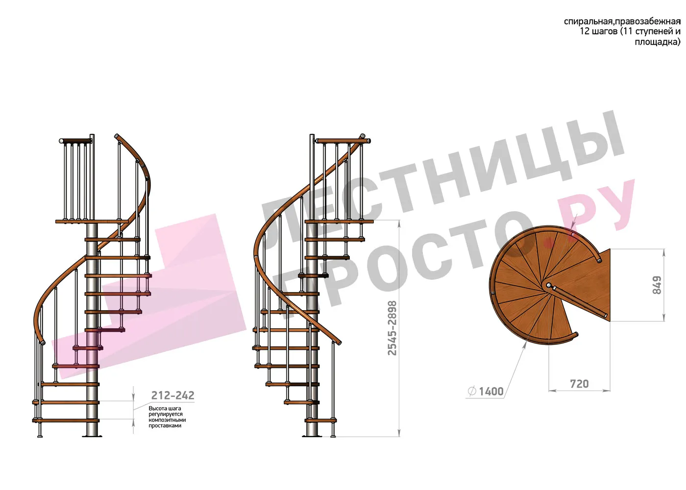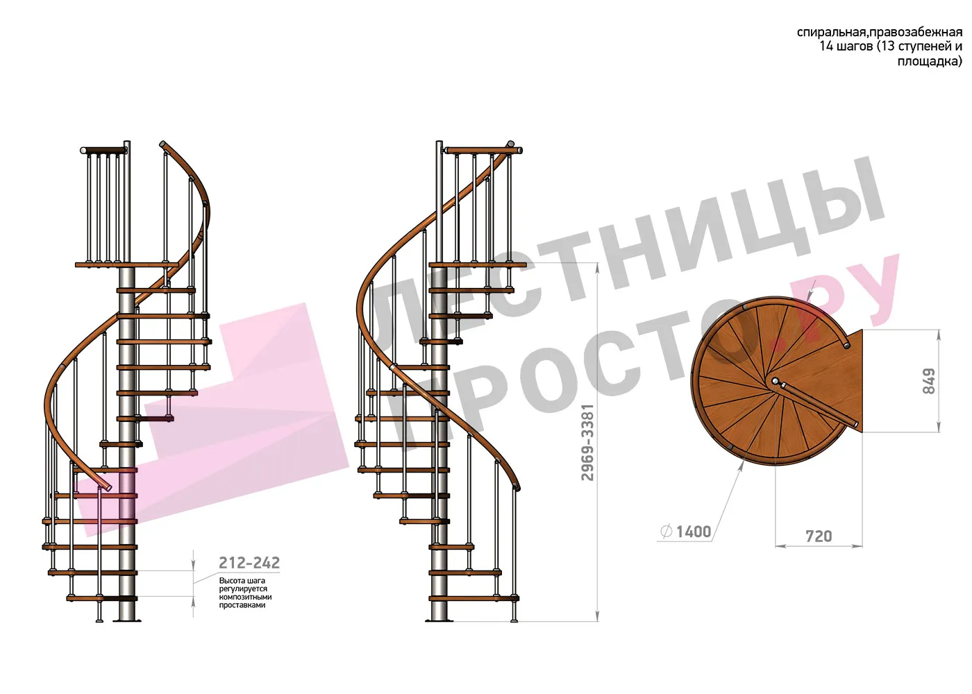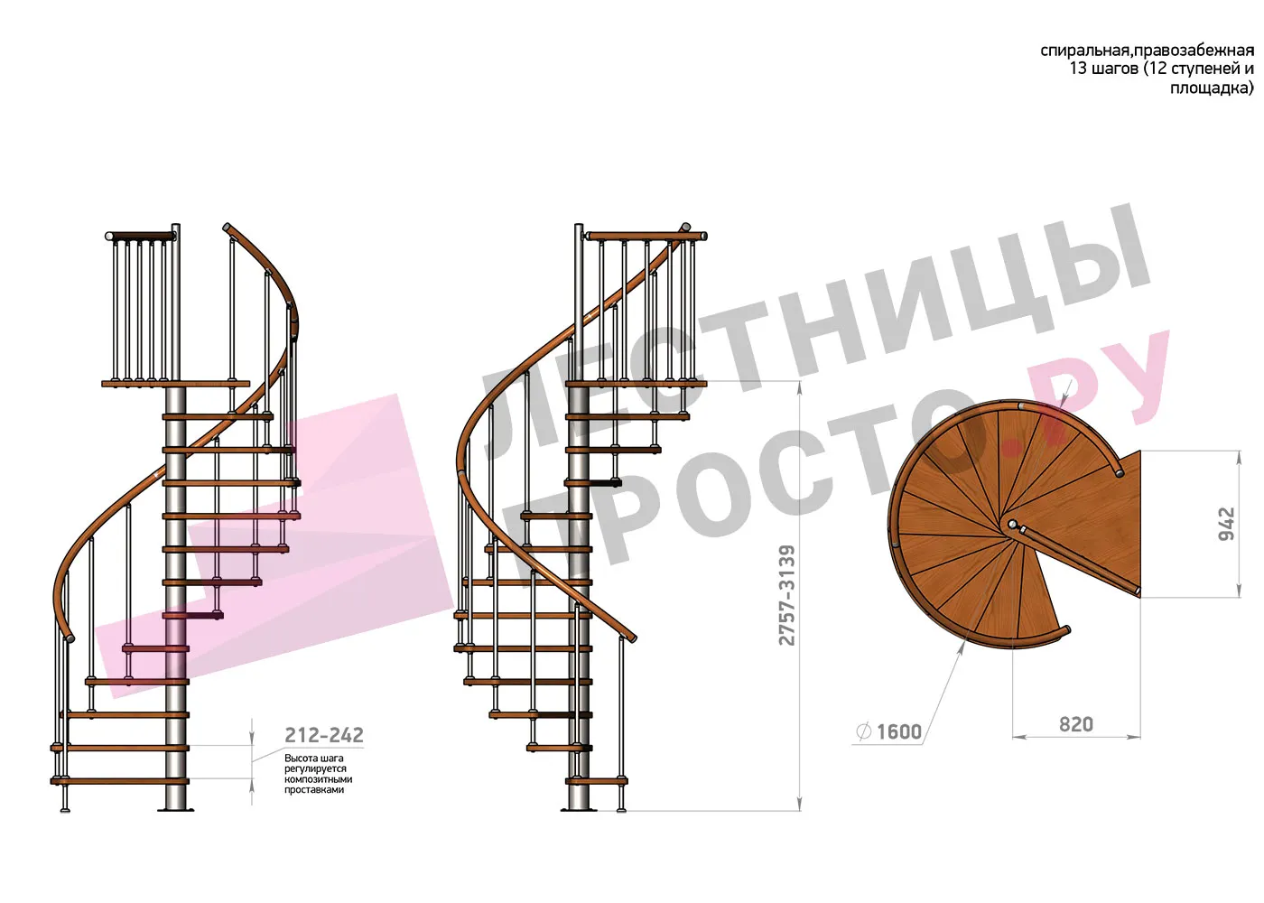 | Винтовая лестница Prosto Spiral Цршеу D120см, h225.5-247.5 см |