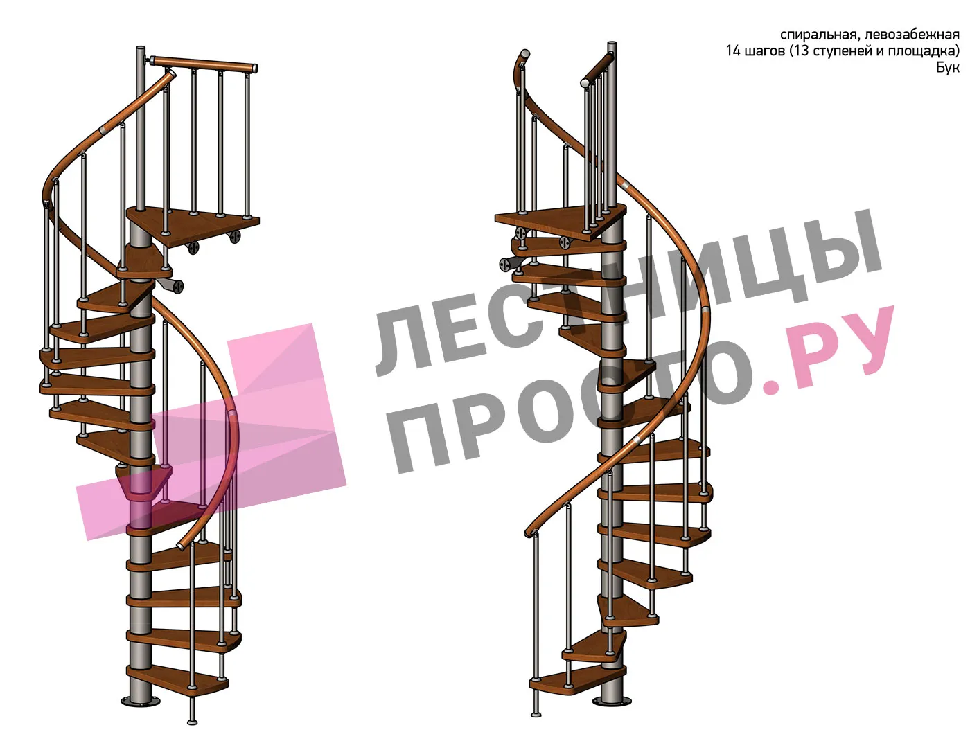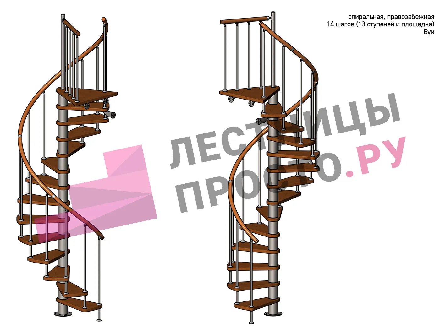 Винтовая лестница Prosto Spiral White D120см, h303.9-348,1 см, бук