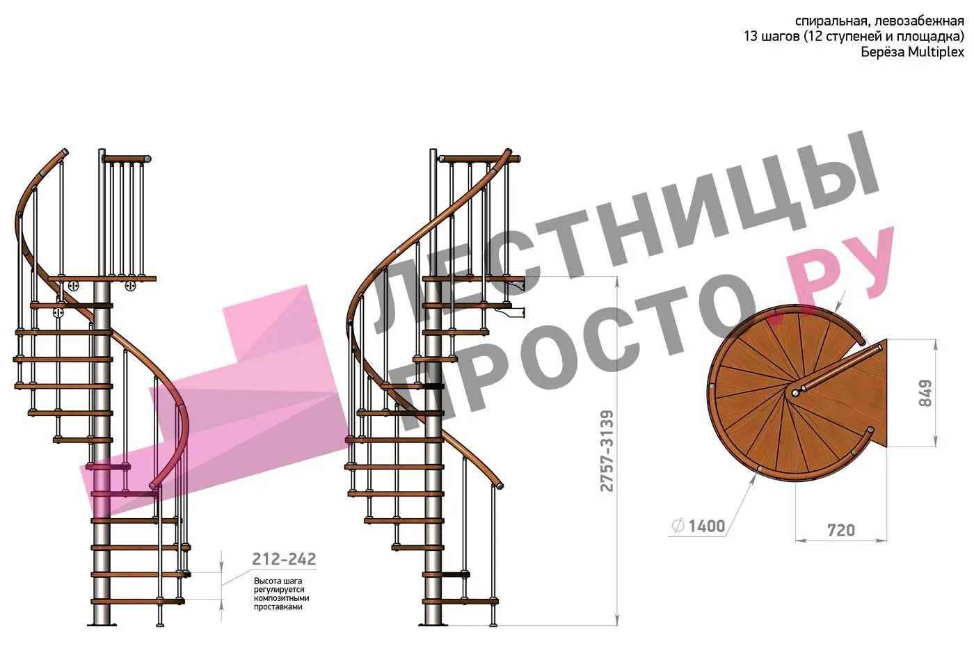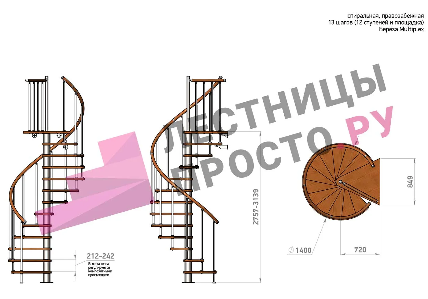 Винтовая лестница Prosto Spiral White D140см, h275.7-313.9 см