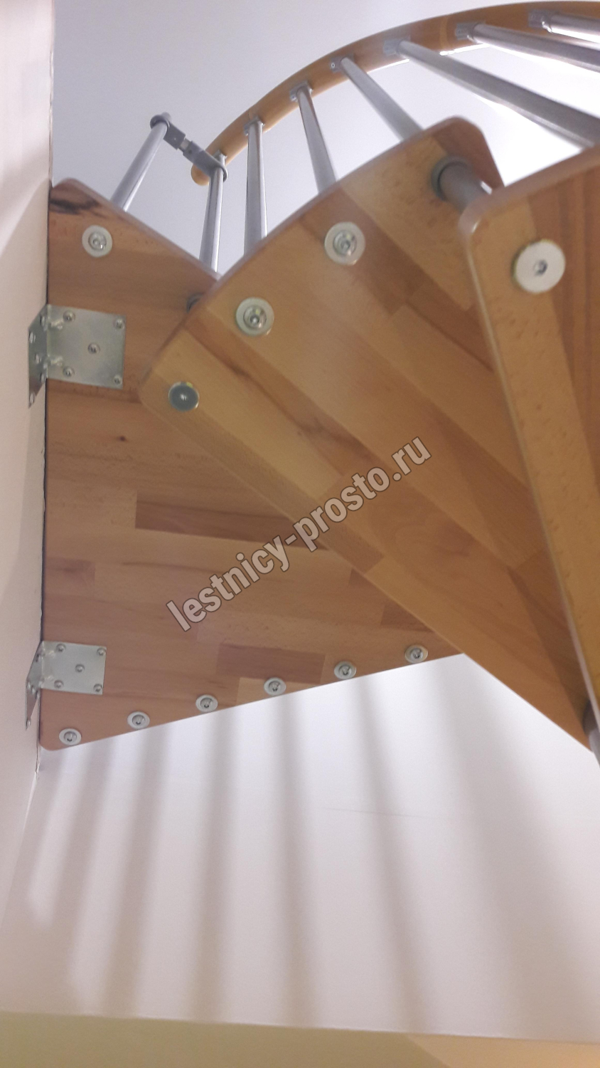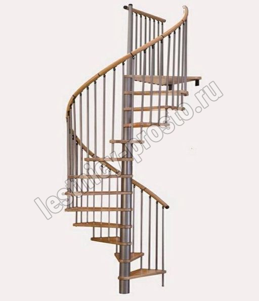 Винтовая лестница SPIRAL WOOD d120 см. серебро, лакированный дуб