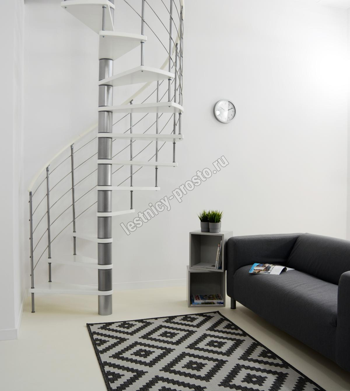 Винтовая лестница Venezia d160 см, серебро, дуб лакированный