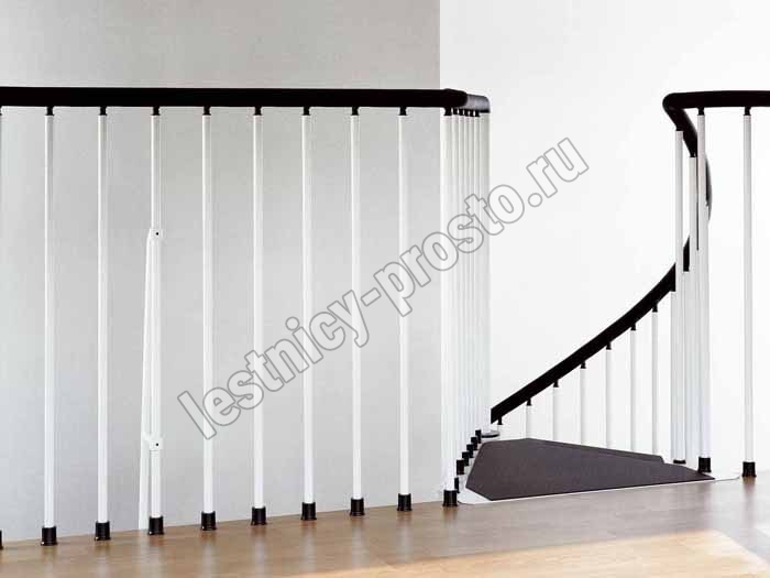 Отделка лестницы всегда в черном цвете. Перила из полиуретана с алюминиевым сердечником черного цвета, как и износостойкие нескользящие панели на ступенях.