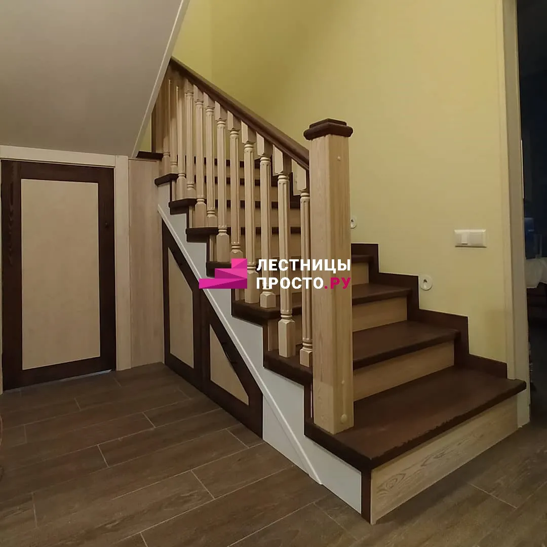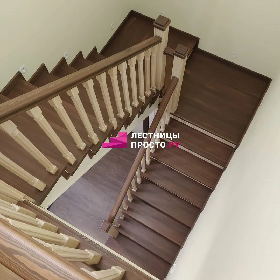 Лестница из ясеня с фигурными балясинами в частном доме по индивидуальному проекту LP-1-46