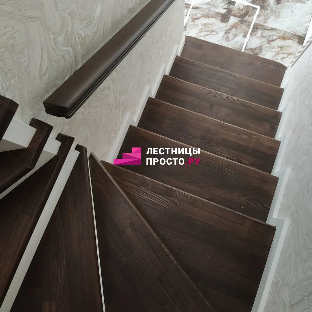 Отделка бетонной лестницы с площадкой в частном доме LP-1-16